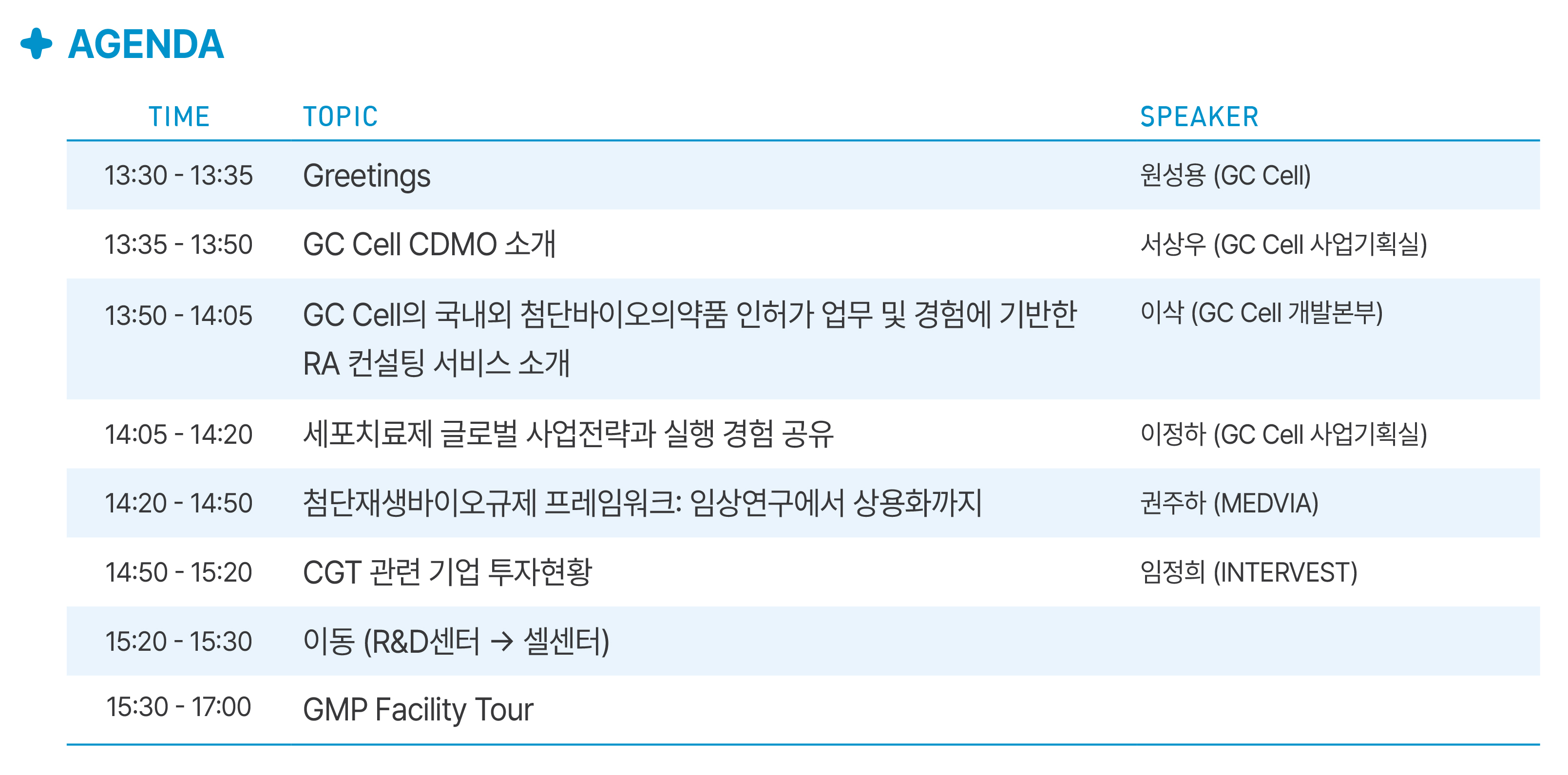 이번 행사는 GC Cell의 고도화된 CDMO 서비스와 GMP 시설을 직접 확인하고, 투자 동향 파악 등 사업 확장에 필요한 핵심 정보를 공유하는 자리입니다.
